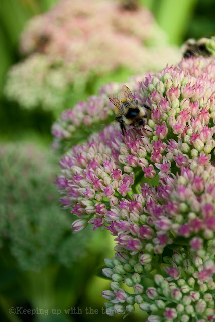 After cruising around the countryside (and stopping at my favourite country store) I came home and took a look in my garden. It still looks beautiful with lots of flowers still blooming. This autumn sedum is just starting to open, but the frenzied bees weren’t waiting for anything – they were all over the place.