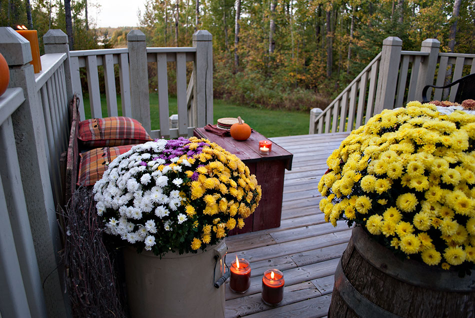 Happy Autumn to you! I love how you decorated your deck. It’s so festive and the mums are GORGEOUS! What a peaceful setting to relax and entertain.