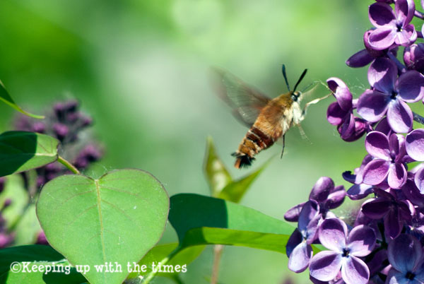 We get the not-quite-so-fancy hummingbird moths, too. You’ve done an extraordinary job of capturing the moth and the lilacs, one of my favorite blossoms. Interesting info I did not know, too. Thanks!