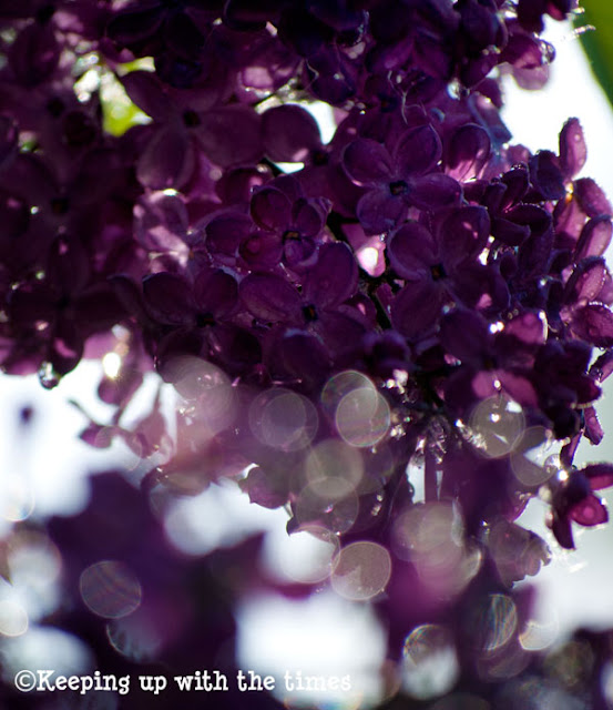 My lilacs are over-the-top gorgeous! I think there must be a hundred blooms this year and that is saying a lot because my one lilac bush is not very big. I don’t know what’s come over it! I’ve taken dozens of photos and I just can’t capture how I feel about it. Butterflies visit it. Bugs visit it. I have a vase sitting here on my desk with two sprays and the scent, oh the scent! It is absolutely heavenly. I wish it would stay like this all summer but I suppose that is part of the charm of it all – it’s time is fleeting and thus so much more cherished. I captured this bokeh early in the morning after a rain and this photo is straight out of the camera.