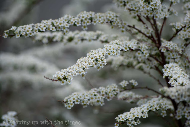 Beautiful shot of that Spirea(?)…..I like it when the wind scatters the old blossoms everywhere….much like a snowfall I guess.